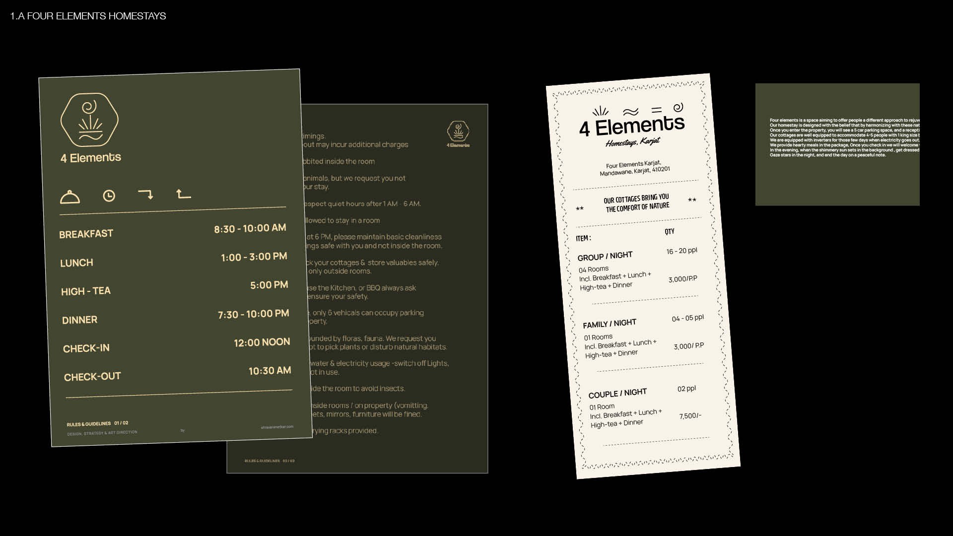 Logo: Branding a space which promises slow living in the city of Mumbai is not a simple task. With Four Elements, we wanted an identity which would speak with the guests and transcended language.